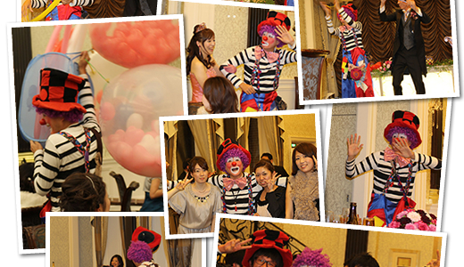 2013年1月12日に名古屋市昭和区鶴舞にあるグラストニアにて行われた、「森口家前田家ご両家」の結婚披露宴にクラウン バロンが余興として登場しました。とてもお似合いな新郎新婦の門出に、少しばかりの花を添えさせて頂きました。