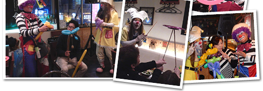 」の打ち上げに呼ばれ、クラウン ピートとクラウン バロンがパフォーマンスを行いました。イベント企画者の1人でもあるTEBAオーナーの寺尾さんは中村区の催しに毎回のように出演を依頼してくださり、大変感謝致しております。